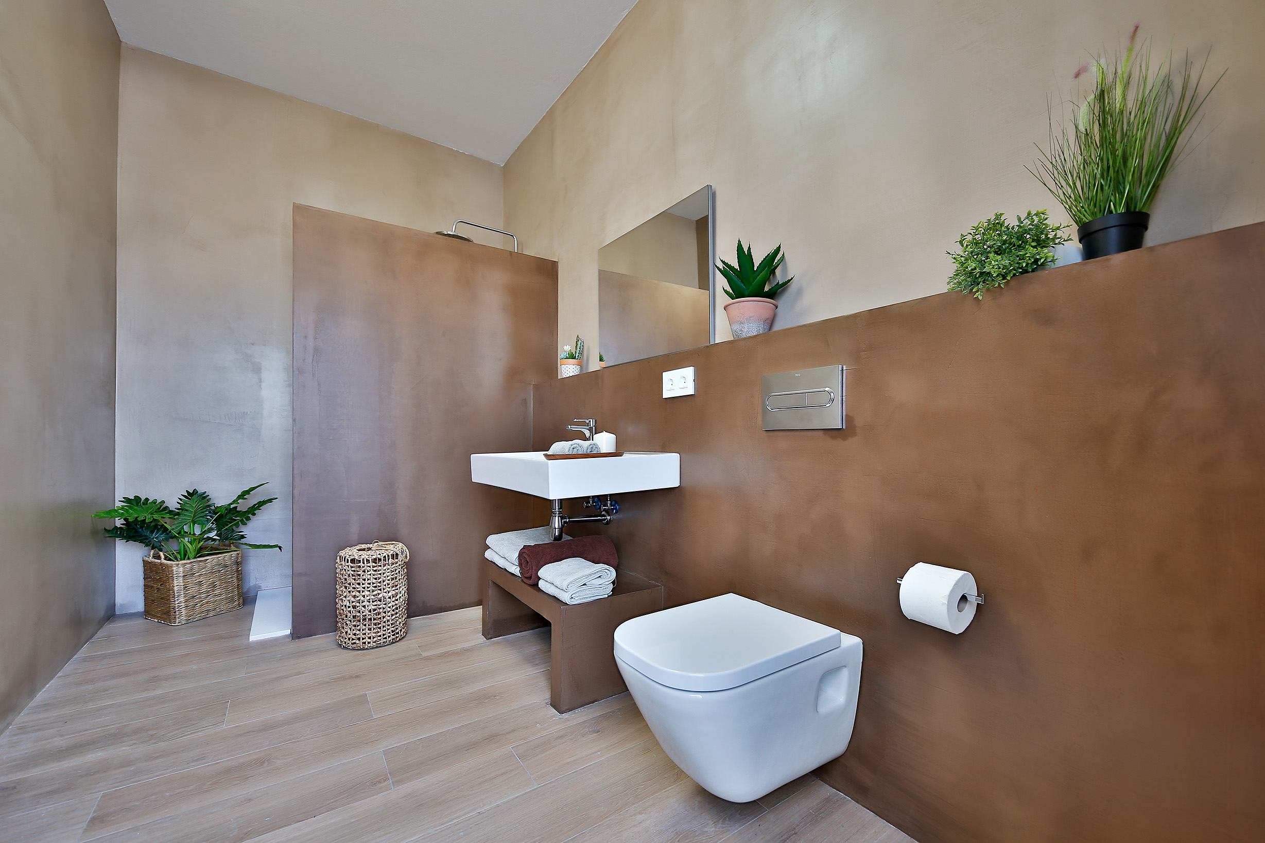 4 baños, uno de ellos exterior junto a la piscina inferior