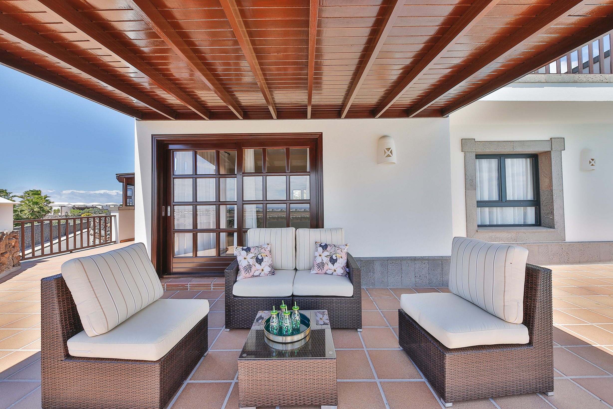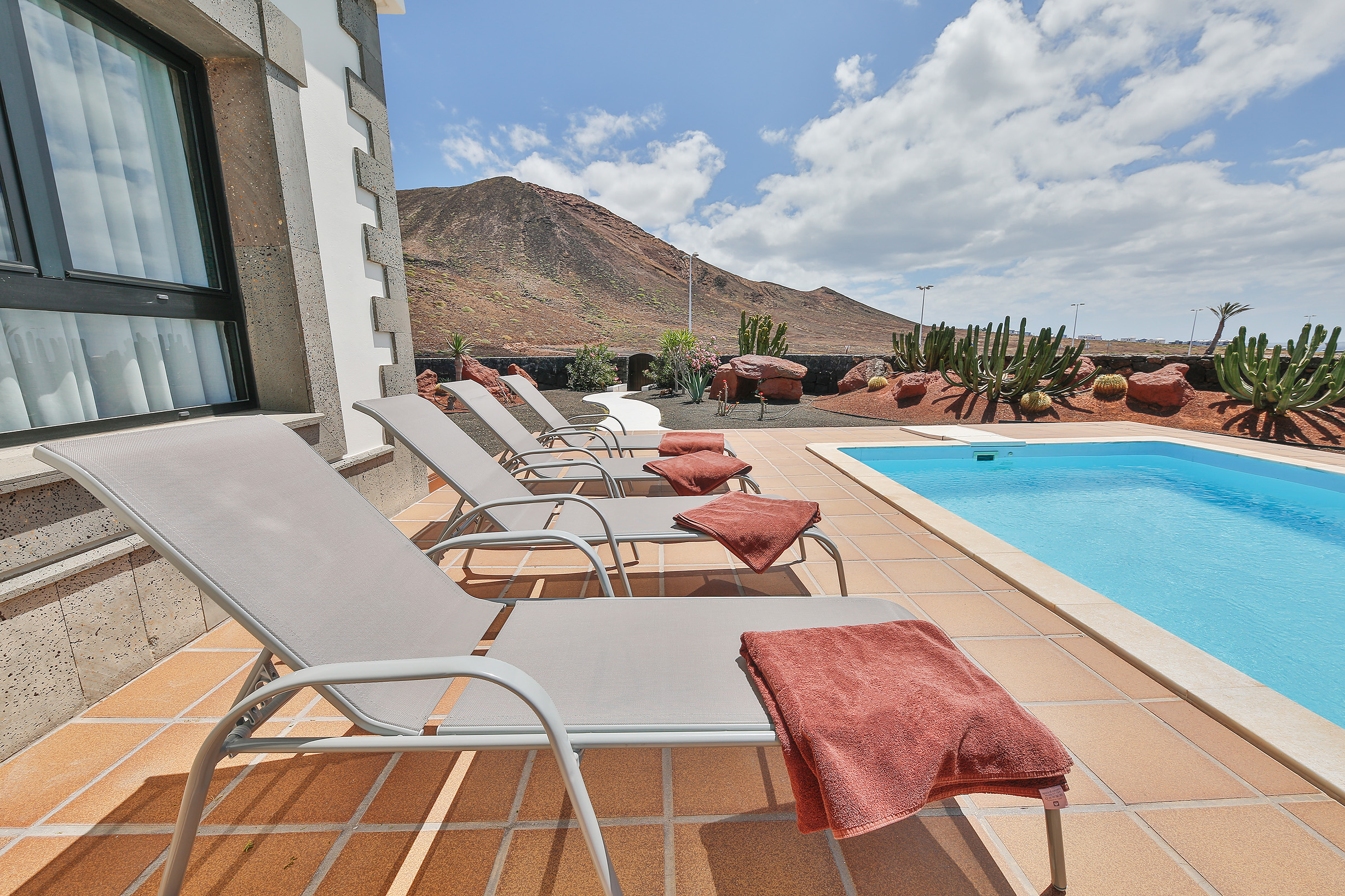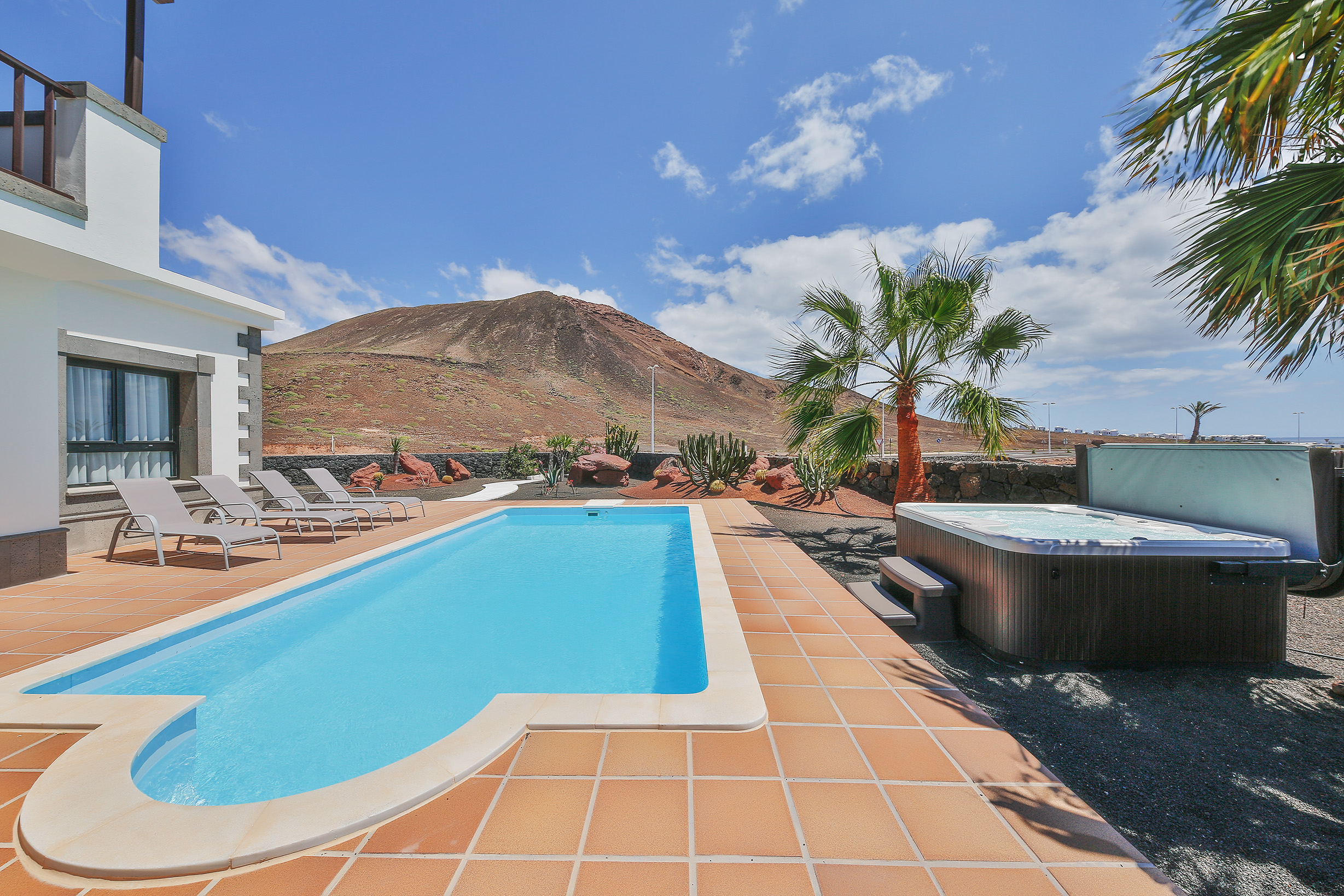 Descubre Villa Sea Winds Lanzarote, una fantástica villa independiente ubicada en el sur de Lanzarote, en la exclusiva zona residencial de Montaña Roja (Playa Blanca). Su posición privilegiada, a los pies del emblemático volcán “Montaña Roja” y ligeramente elevada, ofrece espectaculares vistas frontales al mar y a las islas de Lobos y Fuerteventura.