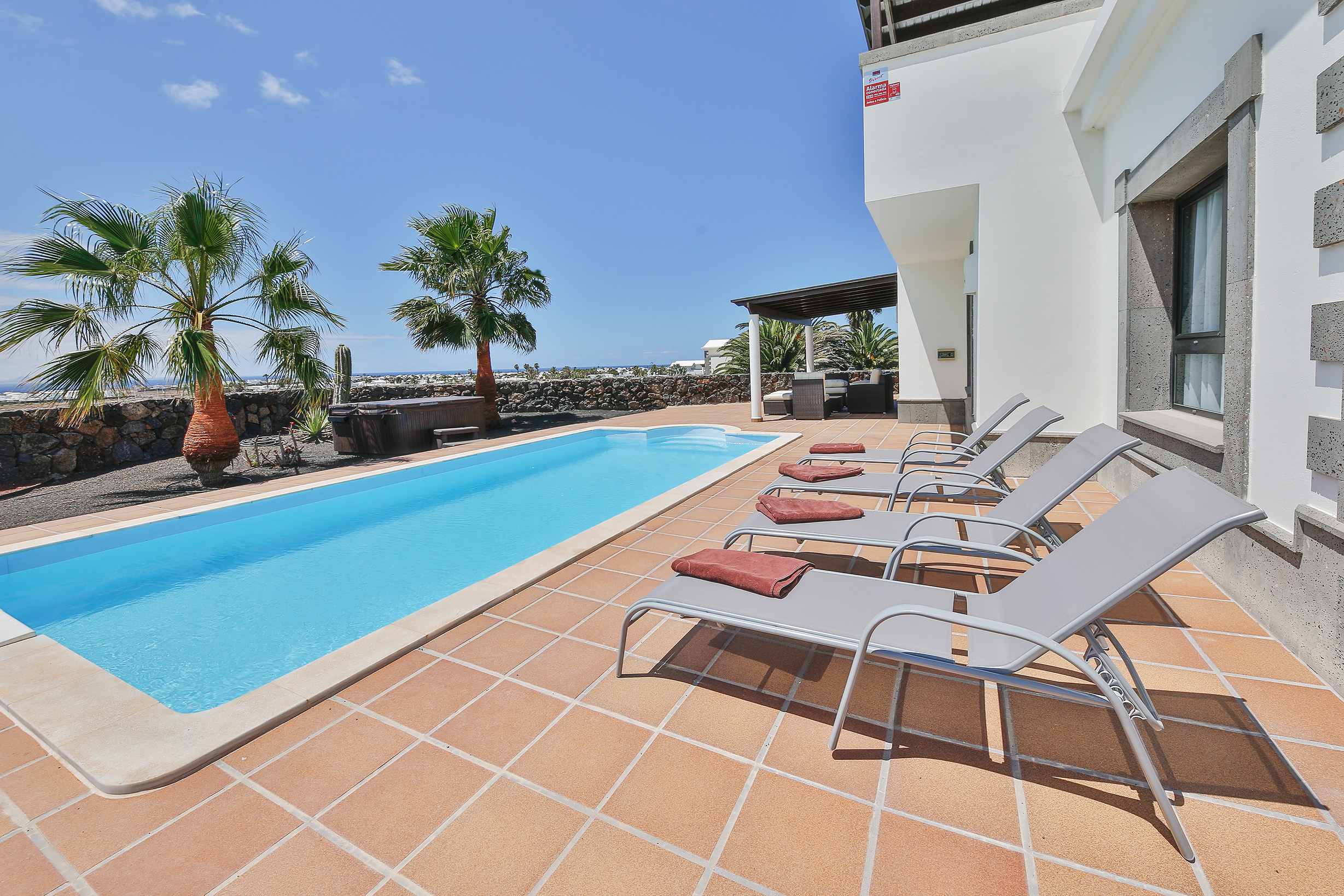 La villa está situada en el Residencial Los Alisios, una urbanización con gran privacidad. Es el lugar perfecto para perderte, relajarte y desconectar de tu día a día. Está cerca del emblemático Faro de Pechiguera, declarado “Bien de Interés Cultural” por el Gobierno de Canarias en 2.002 y a una distancia de 6 km del pueblo de Playa Blanca.